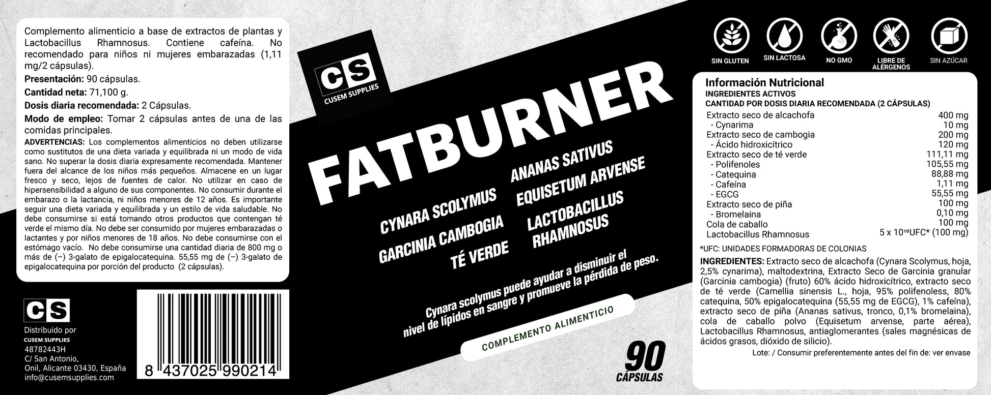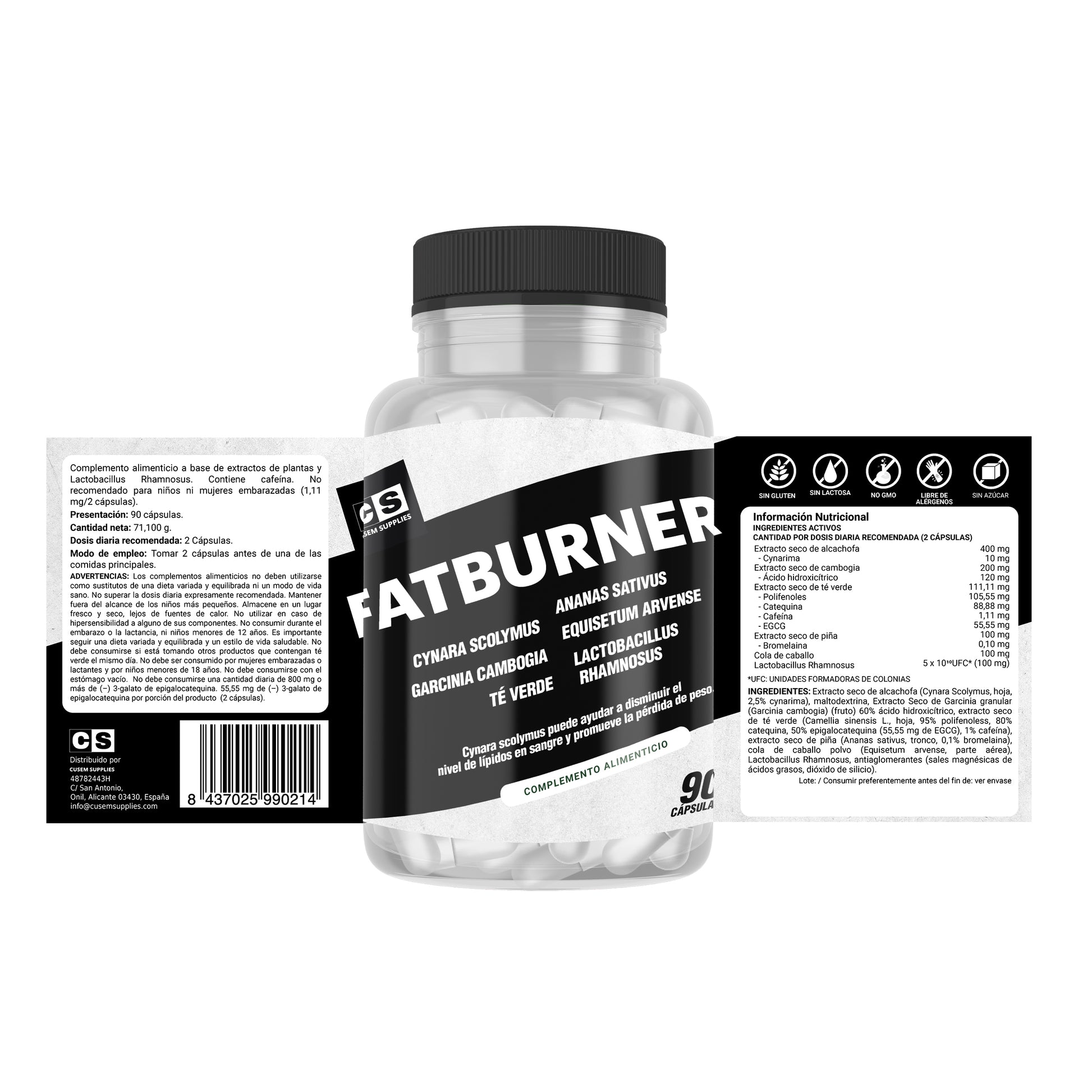 FATBURNER CUSEM es un suplemento formulado con extractos de origen vegetal, entre ellos Cynara scolymus, tradicionalmente utilizada como apoyo dentro de programas de control de peso y bienestar digestivo. Ideal como complemento de una dieta equilibrada y un estilo de vida activo.