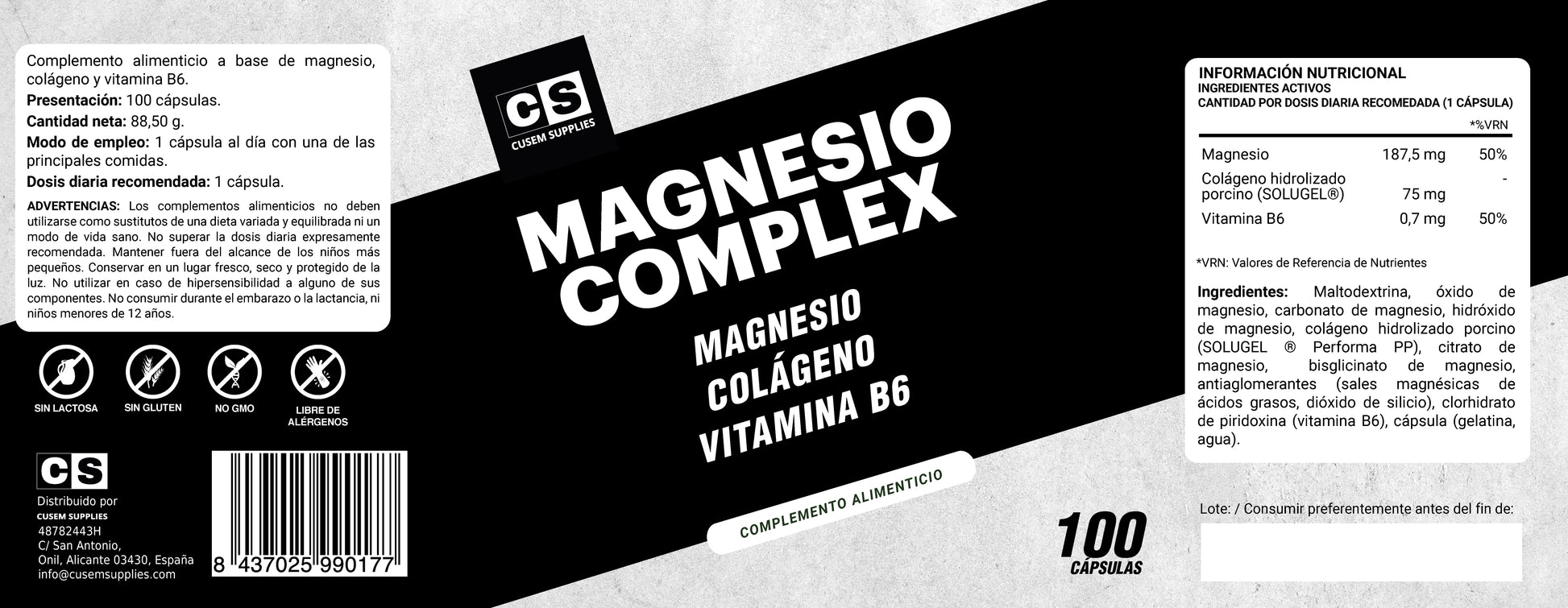 Magnesio Complex CUSEM combina magnesio con colágeno y vitamina B6 en una fórmula diseñada para acompañar el bienestar diario. El magnesio es un mineral esencial ampliamente utilizado en rutinas de cuidado general, especialmente por personas activas.